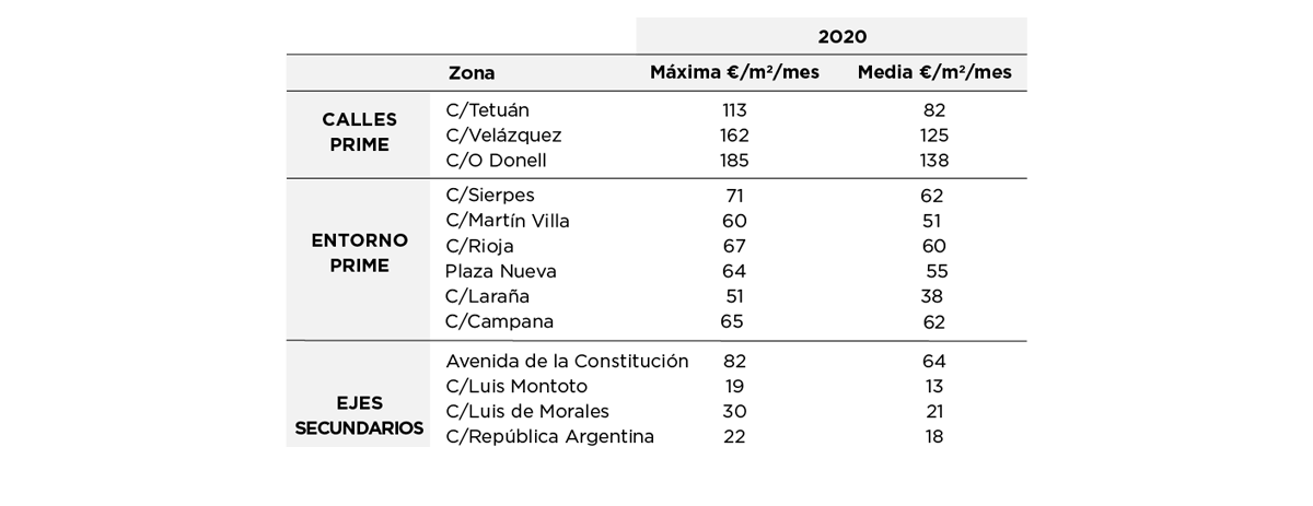 El aumento de la rotación de operadores, la llegada de nuevas marcas o el incremento de la disponibilidad, han marcado la actividad de los últimos años. En relación con las rentas, en líneas generales se apreció un descenso en las zonas secundarias, ocasionado principalmente por el aumento de la disponibilidad. Por el contrario, la zona prime ha conseguido estabilizar el nivel de renta media, llegando incluso a materializarse operaciones puntuales con un leve crecimiento, hasta situarse en torno a 153 €/m²/mes (media del valor máximo en la zona). El empuje que está teniendo el mercado sevillano tras la pandemia, recuperando niveles de turismo nacional e internacional, unido a unas rentas en su zona prime en niveles de estrés inferiores a otras ciudades de similares características, está motivando que los operadores posicionen a la ciudad entre sus prioridades. Respecto a la inversión, se ha disparado el interés por parte de fondos y family offices nacionales e internacionales que buscan rentabilidades superiores a las existentes en mercados más líquidos como Madrid o Barcelona.